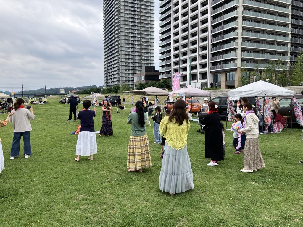 おもちゃ箱をひっくり返したワクワク感を感じるマルシェが開催されました!ワークショップやフード、キッチンカーなど約30店舗が出店。フラダンスや演奏も行い盛り上がりました。お天気もどうにか持ち、無事に笑顔で終われました。