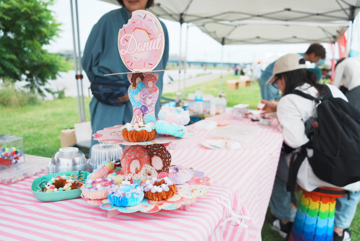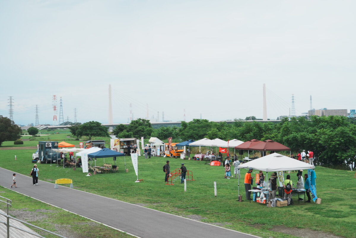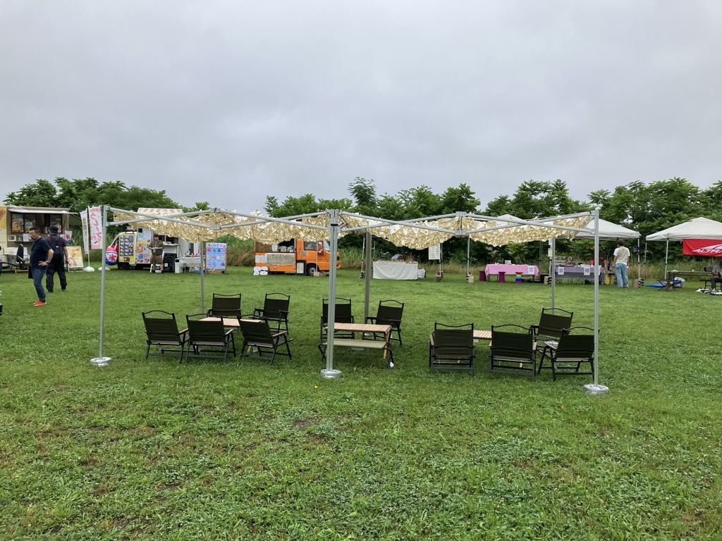 出店は15店舗のワークショップ、パフォーマンス、キッチンカー、飲食、物販など盛りだくさん、また、日よけテントや子供遊具も設置しました。